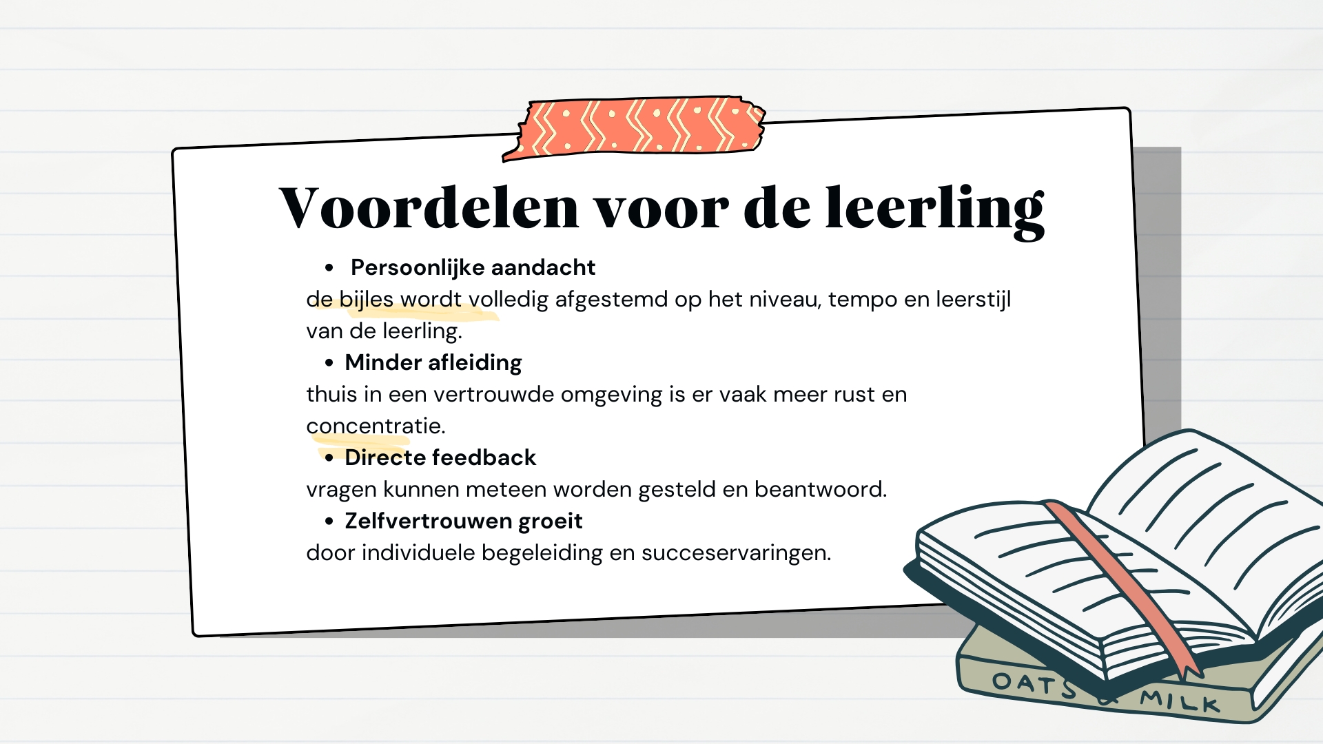 Persoonlijke lessen helpen leerlingen om sterker en zekerder te worden in hun vakken.